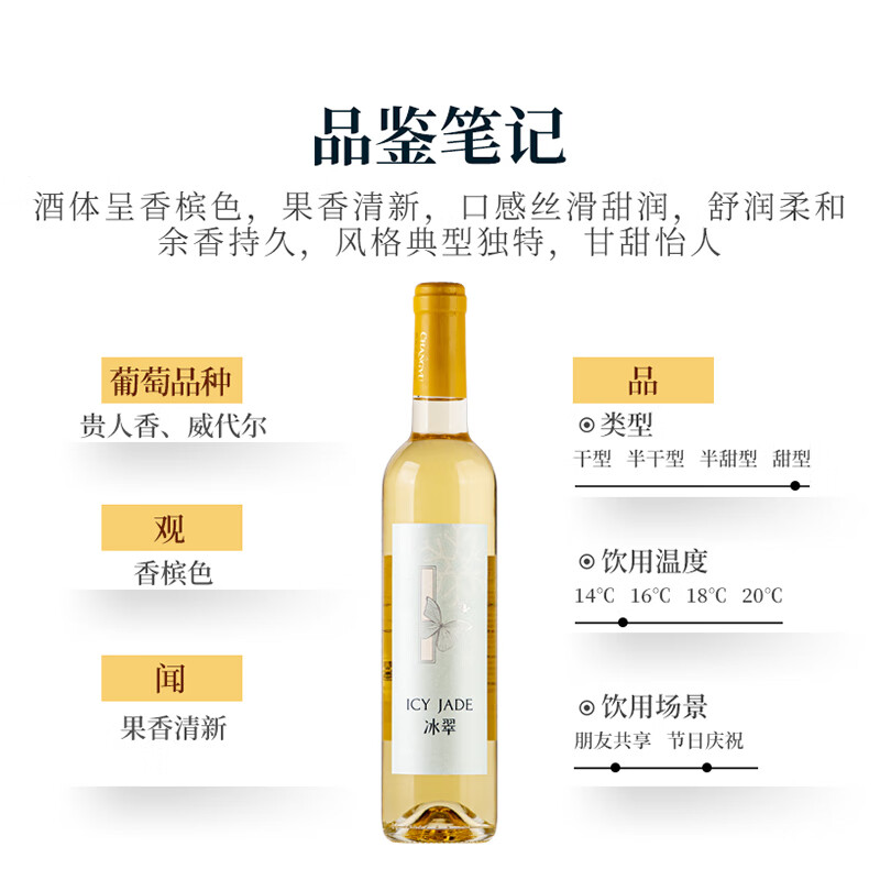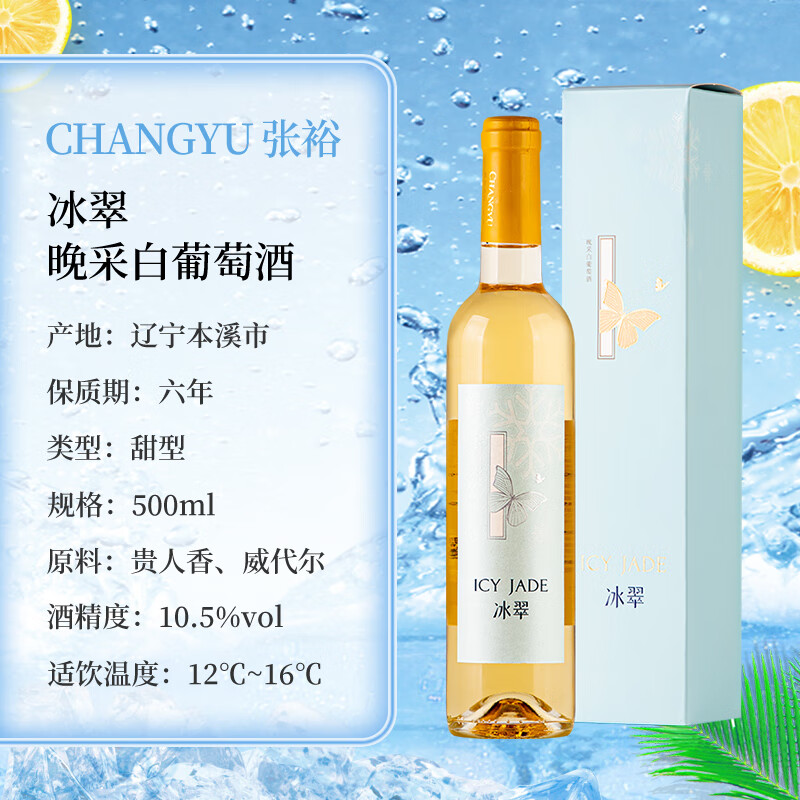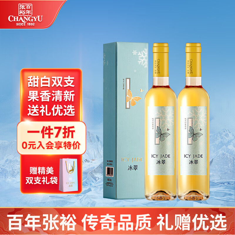 张裕(CHANGYU)冰翠晚采甜白葡萄酒 500ml*2瓶双支礼盒装 国产红酒价格:198.00元!