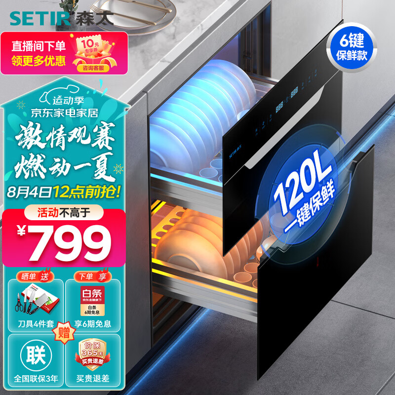 森太(SETIR)F280B消毒柜嵌入式家用小型镶嵌式内嵌式消毒碗柜 臭氧+红外线【六键保鲜款】价格:899.00元!
