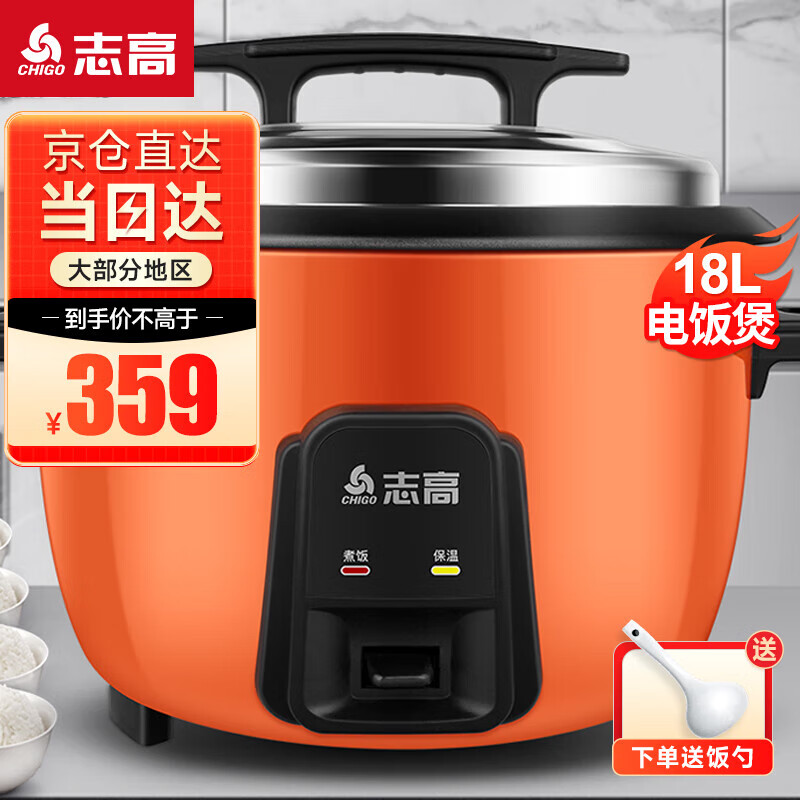 志高(CHIGO)电饭煲商用电饭锅食堂酒店餐厅特大号老式大容量保温蒸饭煲煮饭锅10人20人以上家用 DC-18价格:359.00元!