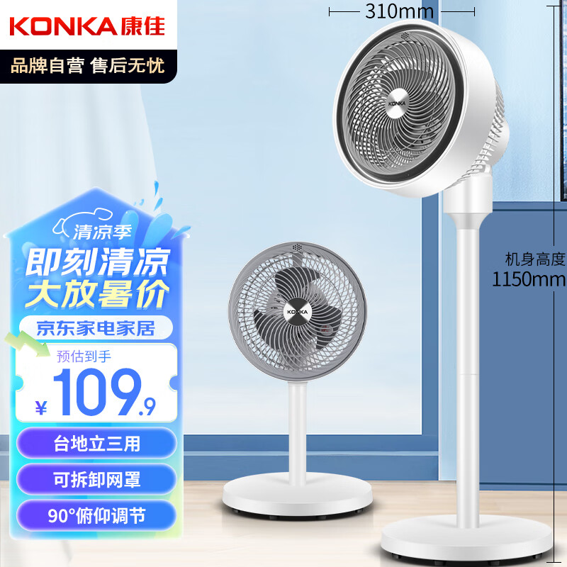 康佳(KONKA)空气循环扇电风扇家用风扇台式摇头小风扇立式轻音电扇节能大风量落地扇空调伴侣KXHS-3001-P价格:199.00元!