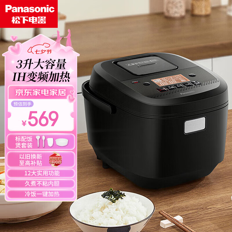松下(Panasonic)电饭煲电饭锅3L远红外立体包裹式加热IH电磁加热1-4人可预约智能多功能电饭煲黑色 SR-HR102价格:629.00元!