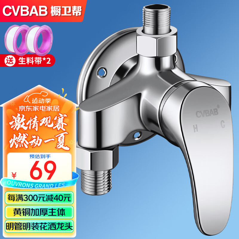 橱卫帮(CVBAB)明装淋浴水龙头铜混水阀花洒明管冷热混水阀龙头淋浴器开关CV1031价格:108.00元!