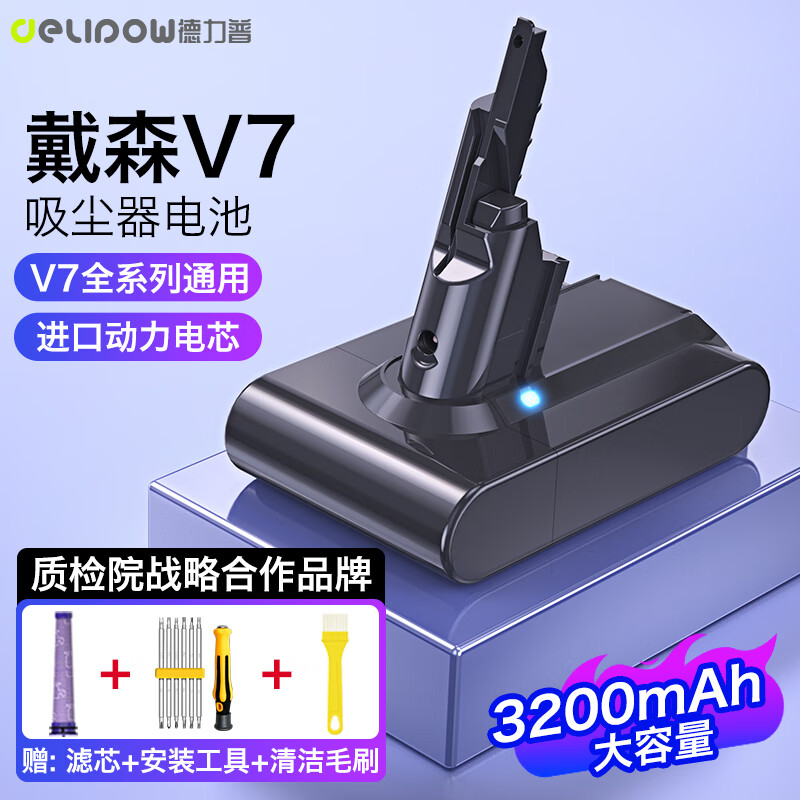 德力普(Delipow)适用戴森Dyson电池V7吸尘器充电锂电池配件 3200mAh大容量SV11 V7 Animal/Fluffy/Motorhead Pro等价格:195.80元!