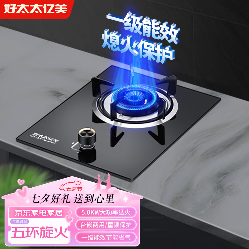 好太太亿美燃气灶液化气煤气灶单灶家用单眼单炉灶台5.0KW猛火台式嵌入式猛火钢化玻璃炉具自安装JZY-DB4Y价格:159.00元!