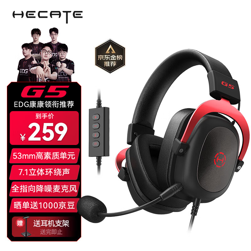 漫步者(EDIFIER)HECATE G5专业赛事级头戴式电竞游戏耳机 USB7.1声道有线电脑吃鸡fps耳麦 降噪麦克风 黑红色价格:279.00元!