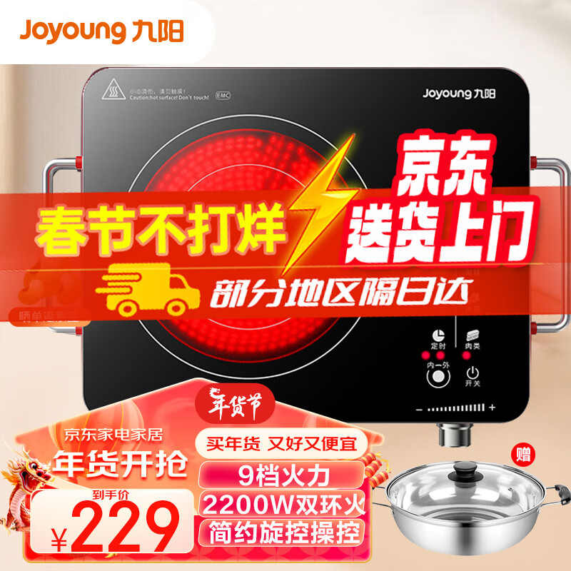 九阳(Joyoung)电陶炉电磁炉电磁灶火锅炉家用智能定时 低辐射内外双环 大功率 年货送长辈送老人H22-X2 配汤锅价格:219.00元!