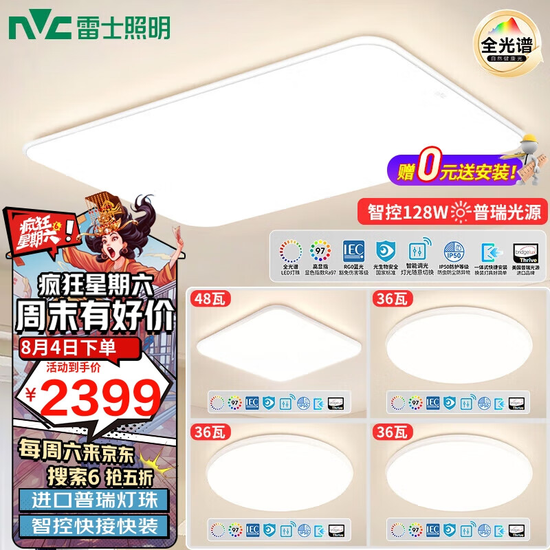 雷士(NVC)吸顶灯客厅大灯led奶油风米家智能全光谱护眼小白灯白雪S舒适光价格:2998.00元!