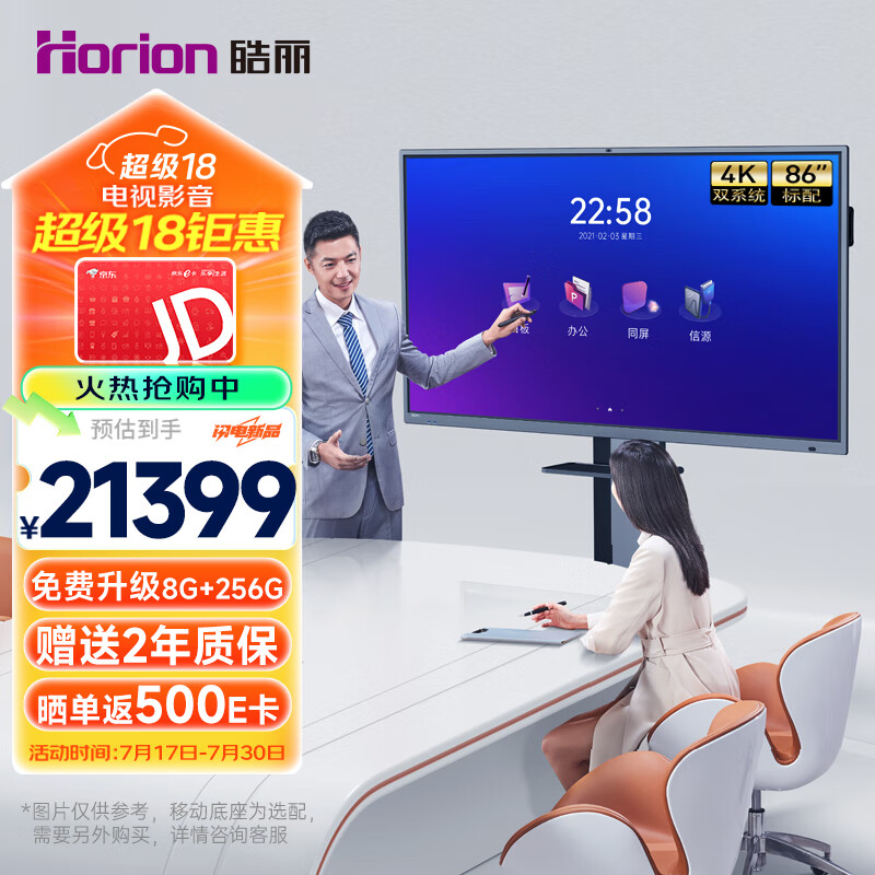 皓丽会议平板一体机86英寸电视触摸Windows11/8+256/无线投屏企业版智慧商显电子白板E86标配价格:23299.00元!
