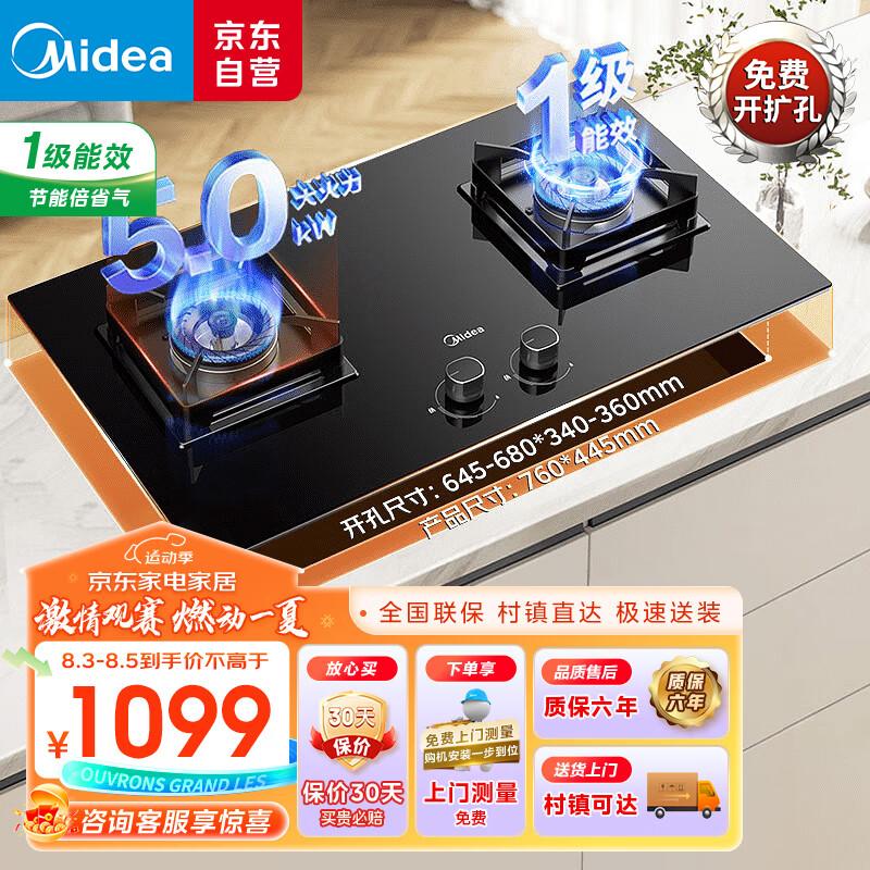 美的(Midea)燃气灶 大火力家用灶具 5.0kW猛火大火灶台嵌两用 JZY-Q523L-M液化气价格:1099.00元!