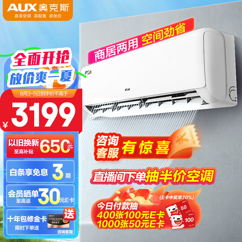 奥克斯(AUX)2匹省电侠空调挂机 新1级能效 空间劲省 快速冷暖 独立除湿KFR-46GW/BpR3AQK1(B1)澎湃大风量价格:3199.00元!
