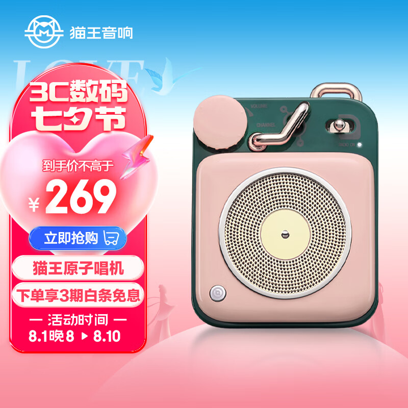 猫王收音机猫王音响 原子唱机B612 MW-P1便携式复古蓝牙音箱户外迷你小音响情人节礼物 可爱粉价格:249.00元!