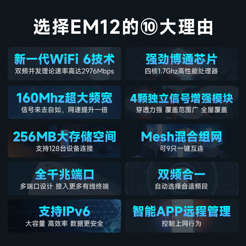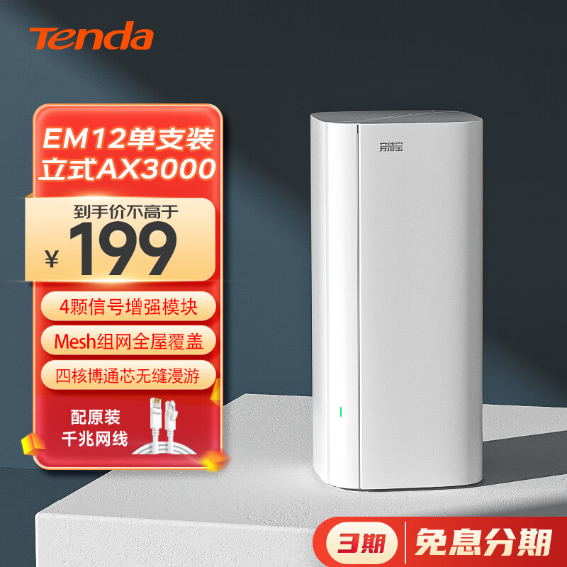 Tenda腾达 AX3000千兆WiFi6路由器 5G双频 家用智能穿墙路由 一键Mesh组网 EM12单只装价格:199.00元!