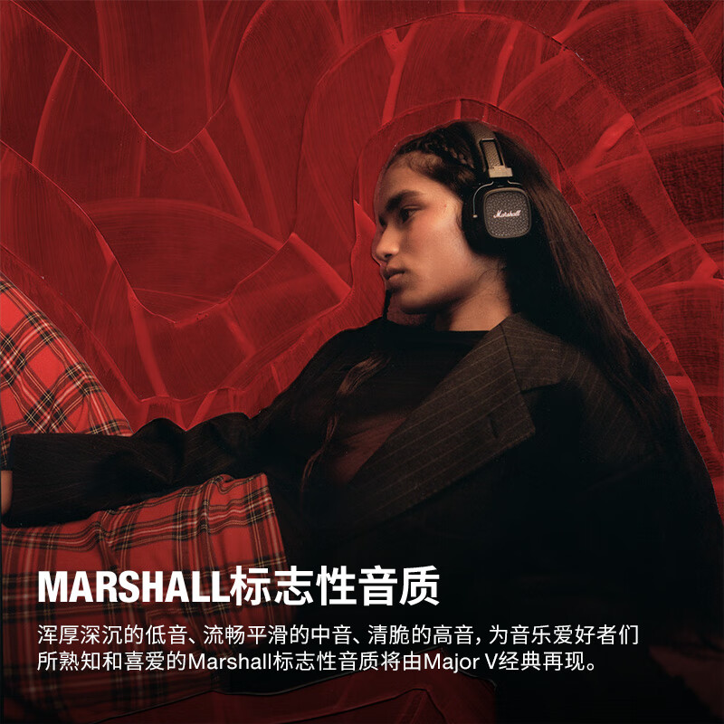 MARSHALL(马歇尔)MAJOR V耳机头戴式无线蓝牙重低音长续航可折叠5代耳麦 黑色价格:1299.00元!