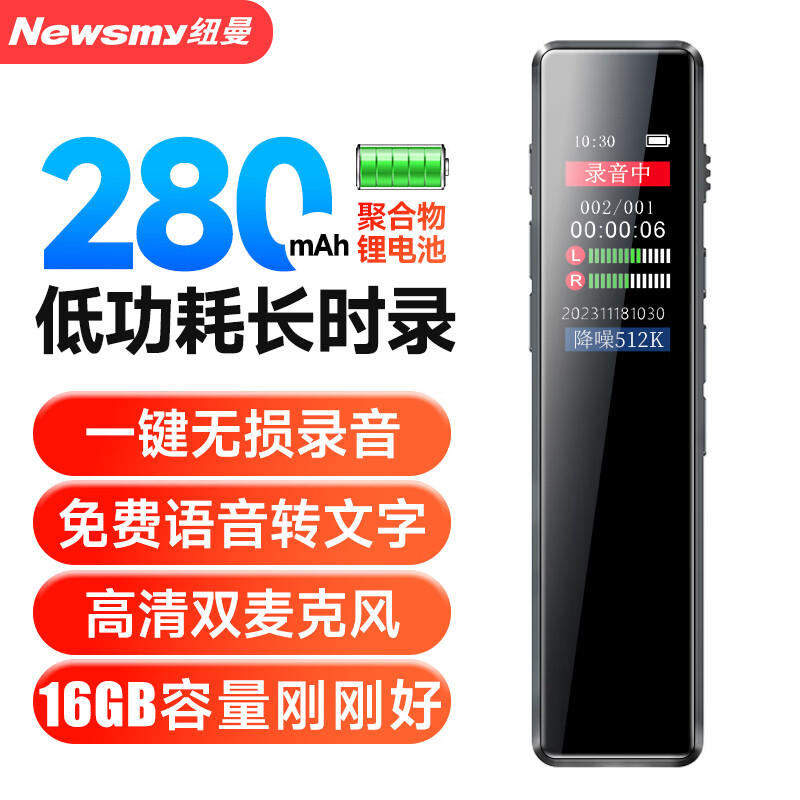 纽曼录音笔 H5 16G 一键录音 专业高清远距 声控降噪 学习采访会议培训超长待机录音器 黑价格:109.00元!