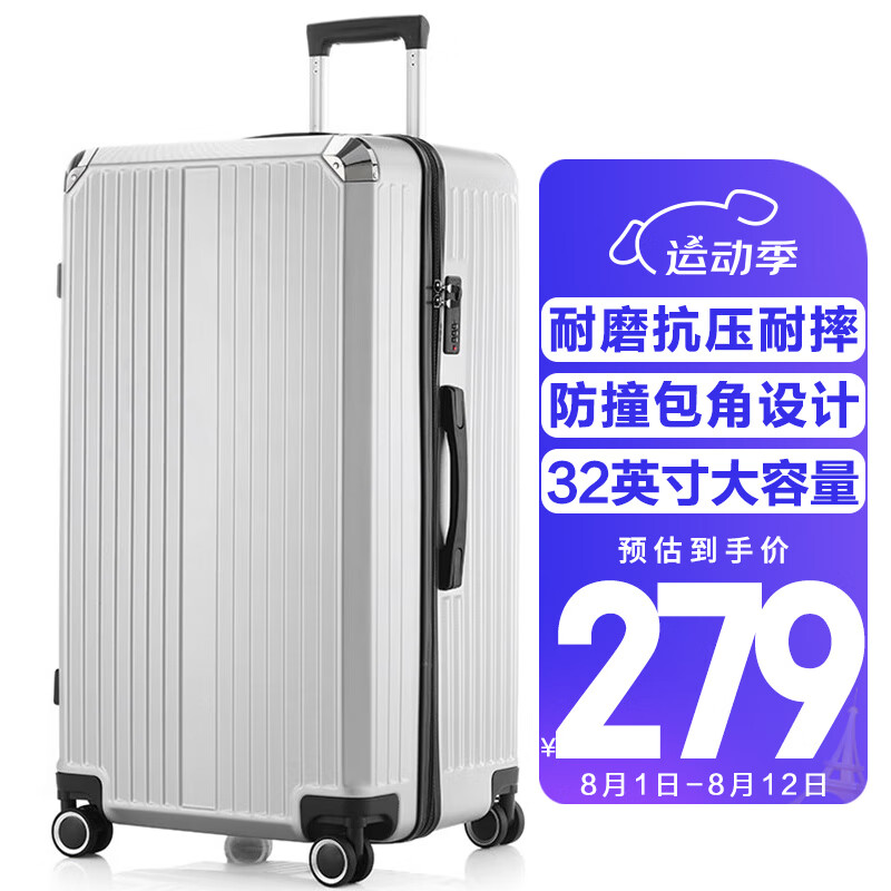 梵地亚行李箱男32英寸大容量超大型拉杆箱大尺寸旅行箱密码箱女皮箱子银价格:279.00元!