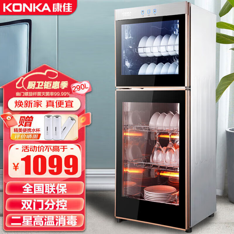 康佳(KONKA)消毒柜立式消毒碗柜商用家用臭氧高温二大容量餐具消毒柜290L双门分控ZTP380K9【企业采购】价格:1099.00元!