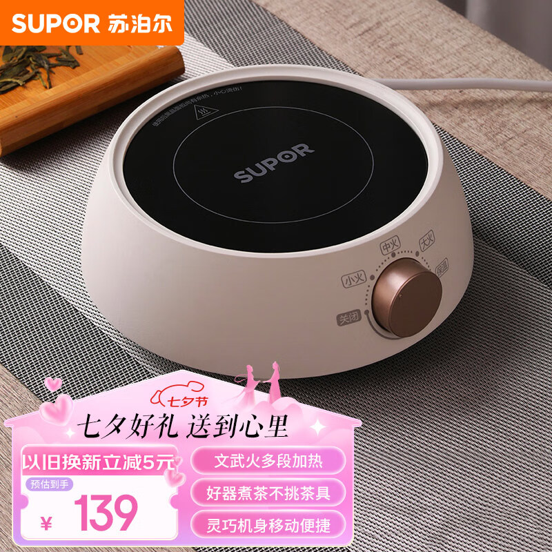 苏泊尔(SUPOR)迷你电陶炉 煮茶器煮茶炉煮茶壶 养生围炉煮茶黑茶花茶泡茶不挑器具 SW-DTL01价格:139.00元!