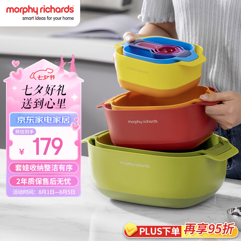 摩飞电器(Morphyrichards)多功能厨具九件套面粉筛蛋清分离器量勺洗菜沥水篮MR1101价格:179.00元!