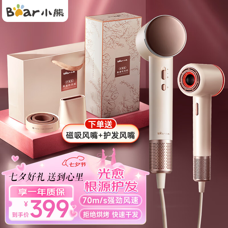 小熊(Bear)吹风机 电吹风家用 吹风筒大功率高速 低噪音亿级负离子 七夕情人节送老婆 女友 礼盒装 DCF-D16E1价格:450.30元!