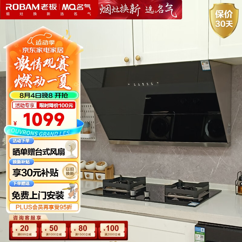 名气老板抽油烟机家用侧吸式油烟机大吸力脱排油烟机厨房单烟机低噪挥手智控21立方米2535A免费安装价格:1099.00元!