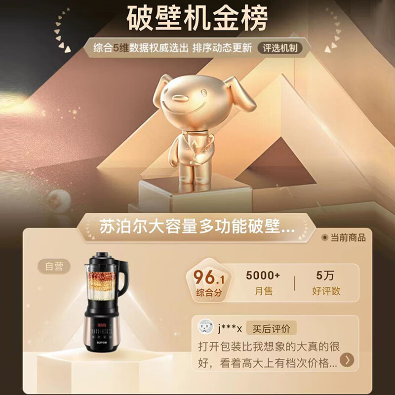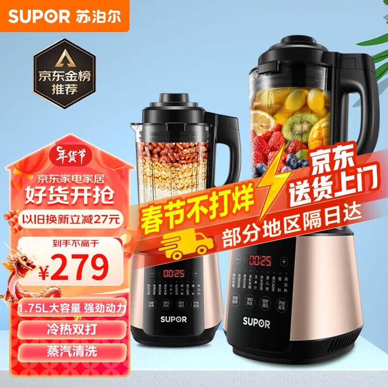 苏泊尔(SUPOR)破壁机 1.75L大容量家用多功能预约加热免滤豆浆机榨汁机辅食机果汁机早餐机年货送长辈 SP503A价格:329.00元!