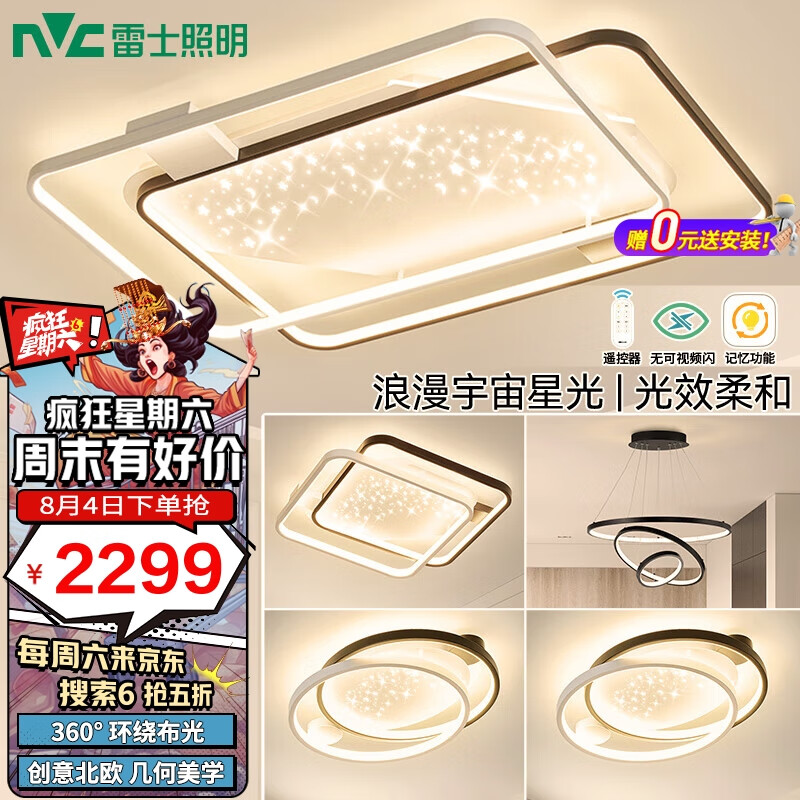 雷士(NVC)客厅套餐后现代简约LED吸顶灯 北欧创意星空氛围星光灯-星雨价格:2613.00元!