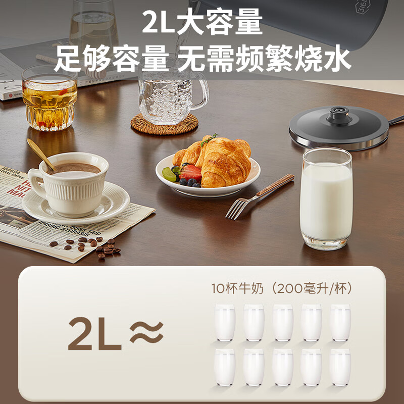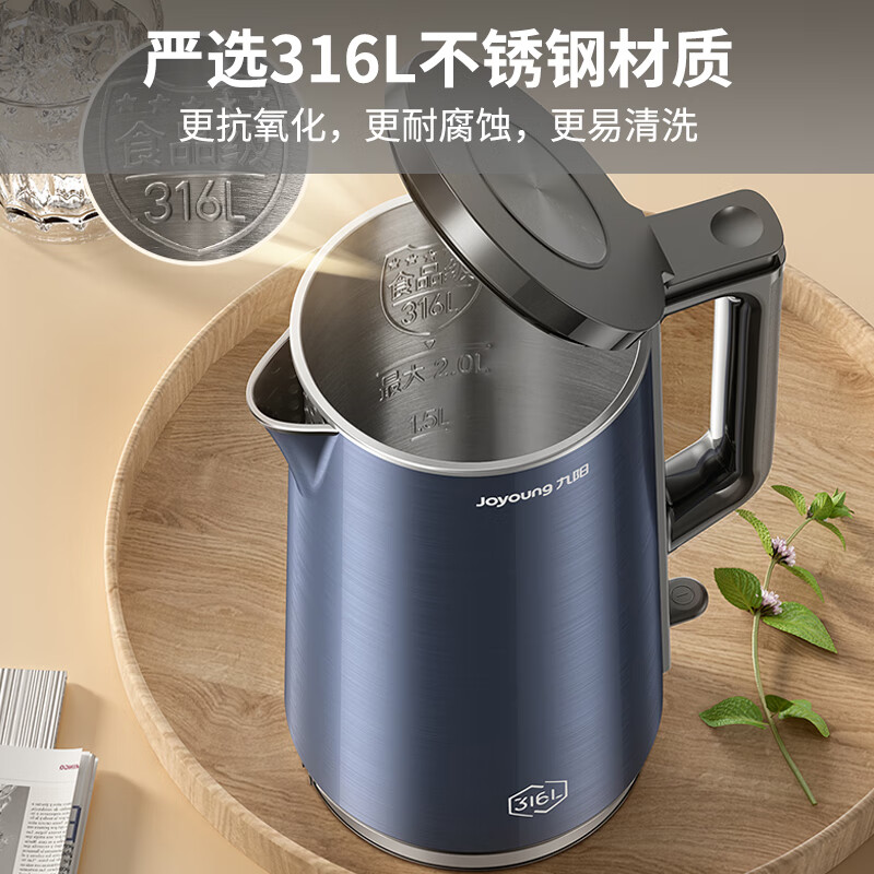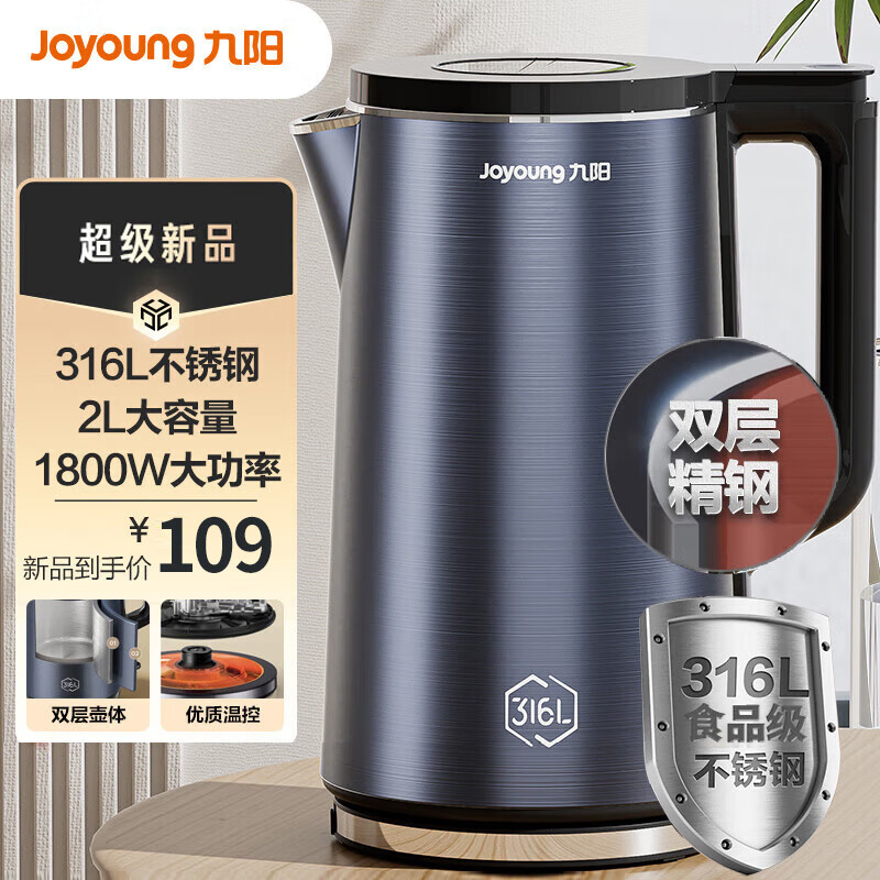 九阳(Joyoung)烧水壶热水壶电水壶2L 内外双钢316L不锈钢 大容量家用开水壶K20FD-W518价格:119.00元!