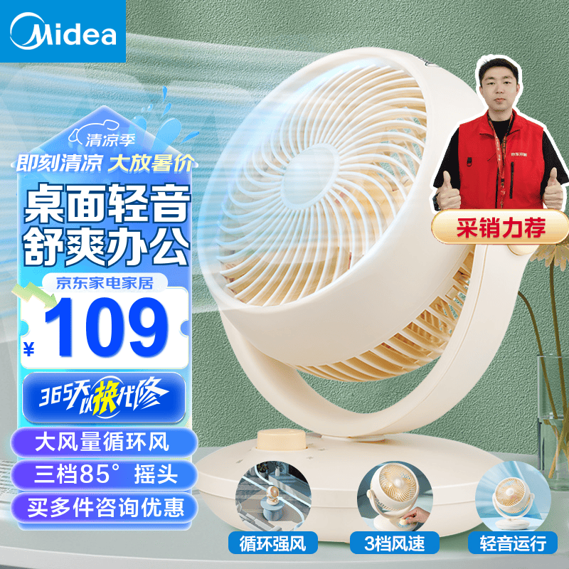美的(Midea)【空调伴侣】【桌面风扇】电风扇家用风扇空气循环扇桌面小风扇手持迷你电扇便携小型宿舍轻音节能 【3档循环扇】GAF18AD价格:159.00元!