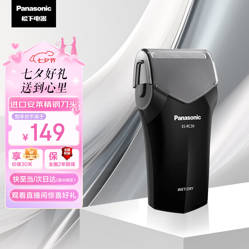 松下(Panasonic)剃须刀刮胡刀电动往复式便携款高速马达七夕情人节礼物男士礼物送男友送老公送RC30价格:149.00元!