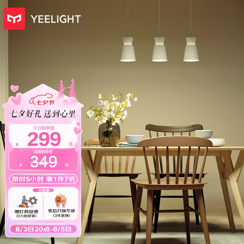 Yeelight时光吊灯现代简约餐厅吊灯吧台咖啡厅北欧吊灯铁艺创意餐吊灯具价格:369.00元!