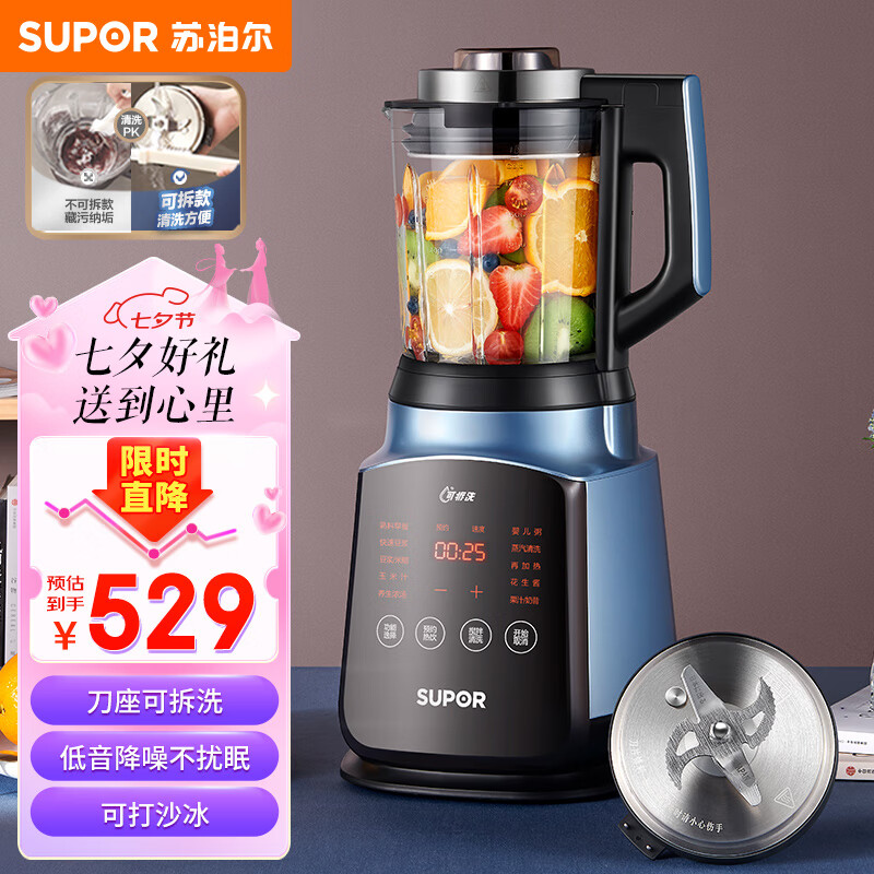 苏泊尔(SUPOR)轻音破壁机 家用1.75L大容量多功能可预约五谷杂粮免滤降噪豆浆机早餐机辅食机研磨机 SP902S价格:569.00元!