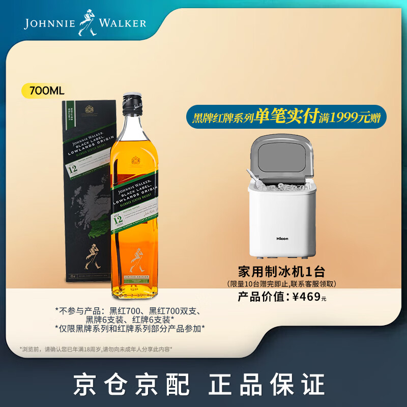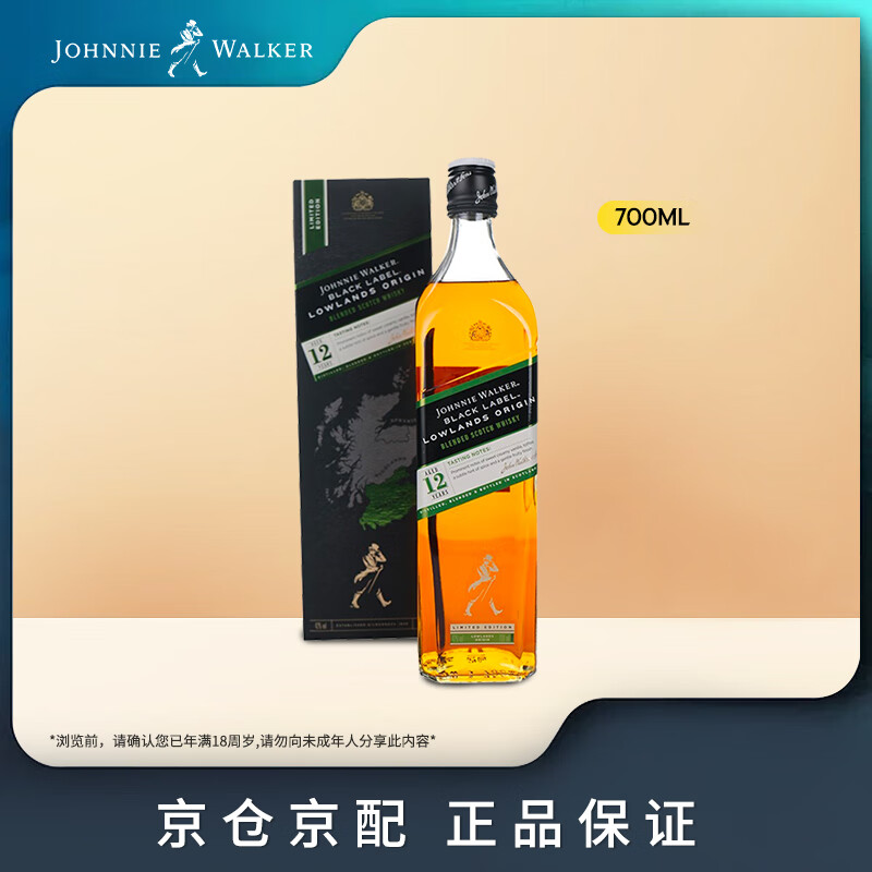 尊尼获加(JOHNNIE WALKER)洋酒 黑牌黑方 12年苏格兰调和威士忌低地区700ml礼盒价格:239.00元!