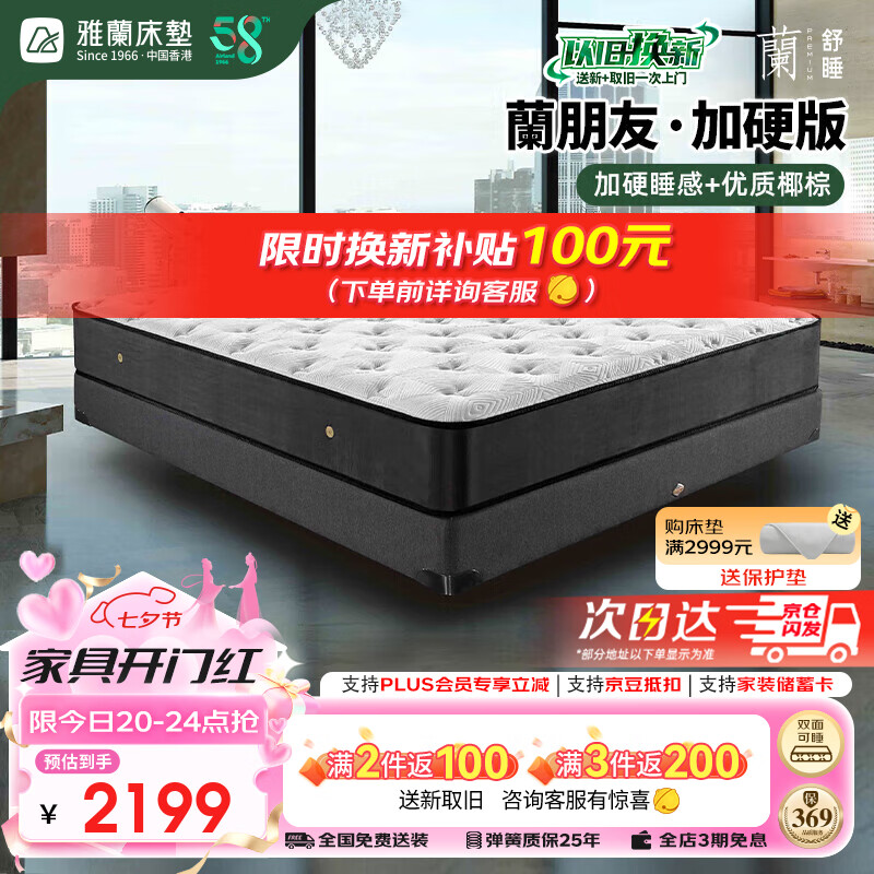 雅兰50周年纪念款 亲肤透气整网弹簧椰棕床垫 蘭朋友加硬版 1.5*2米价格:2699.00元!