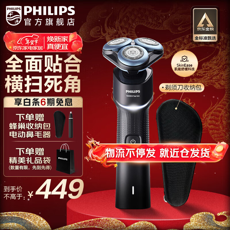 飞利浦(PHILIPS)剃须刀电动 全新5系蜂巢X 智能感应 全身水洗刮胡刀 生日新年礼物送男友送父亲【情人节礼物】 【黑武士】X5003/00 普通装价格:599.00元!