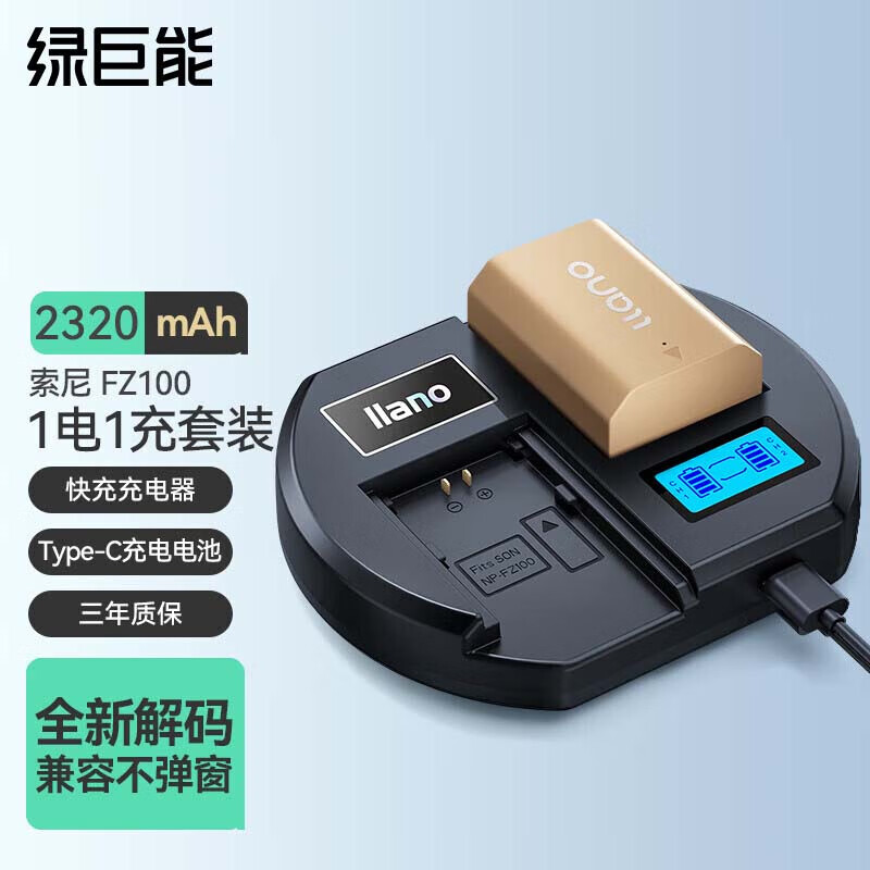 绿巨能(llano)索尼FZ100相机电池a7m4 a7s3 a7c a7r3 a7m3 a6600微单Type-C口充电电池快充充电器套装一电双充价格:299.00元!