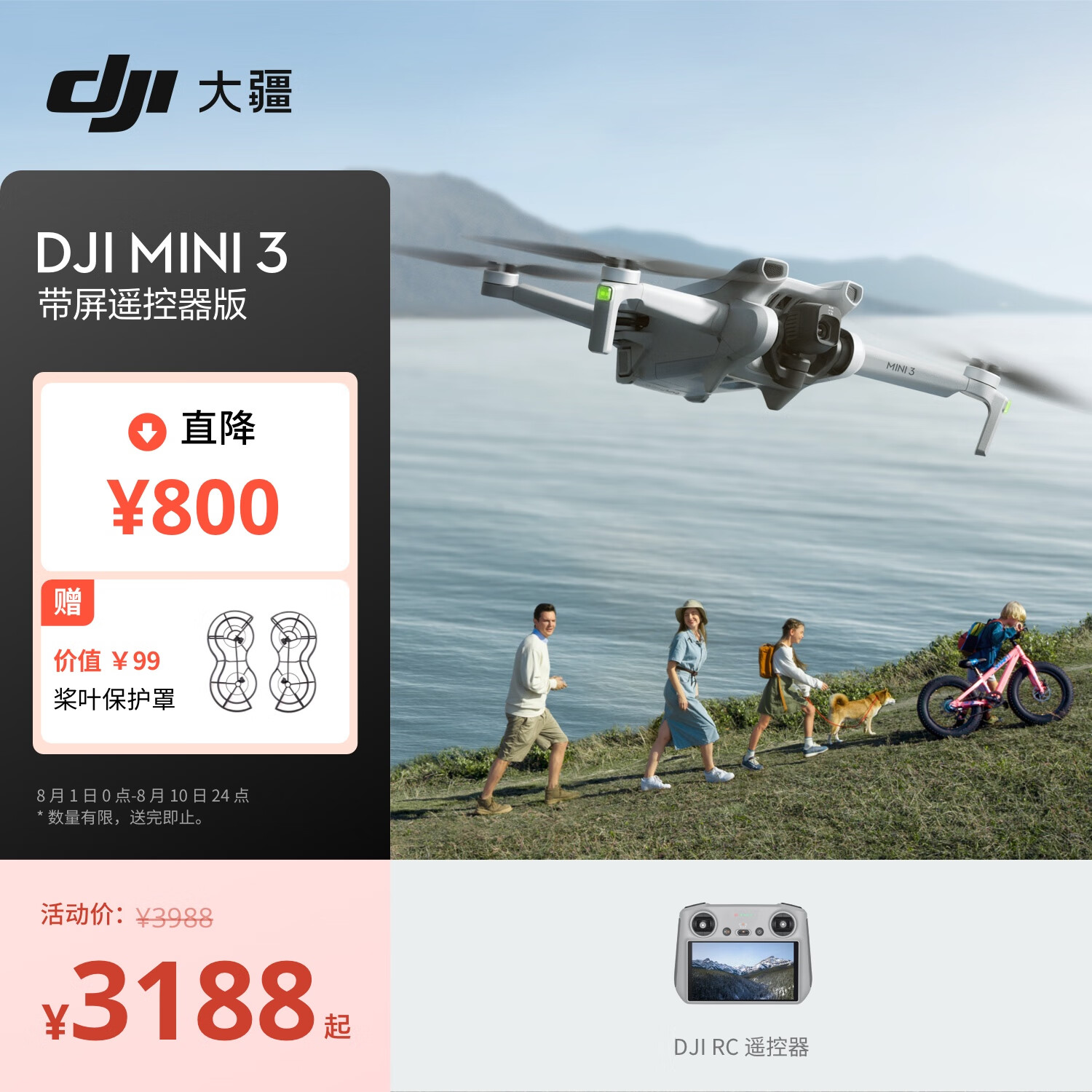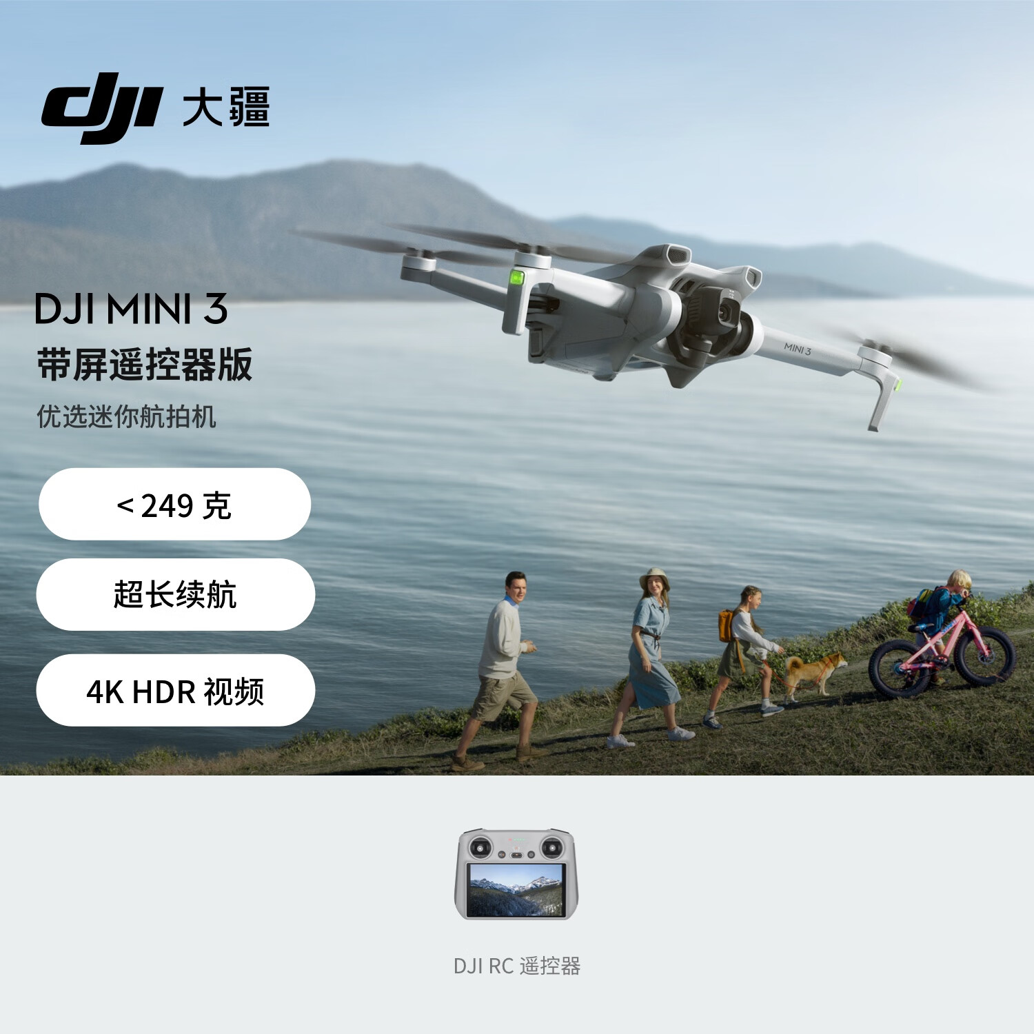 大疆 DJI Mini 3 带屏遥控器版 优选迷你航拍机 智能高清拍摄无人机 小型遥控飞机+随心换2年版实体卡价格:3716.00元!