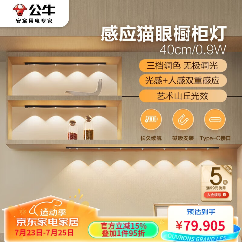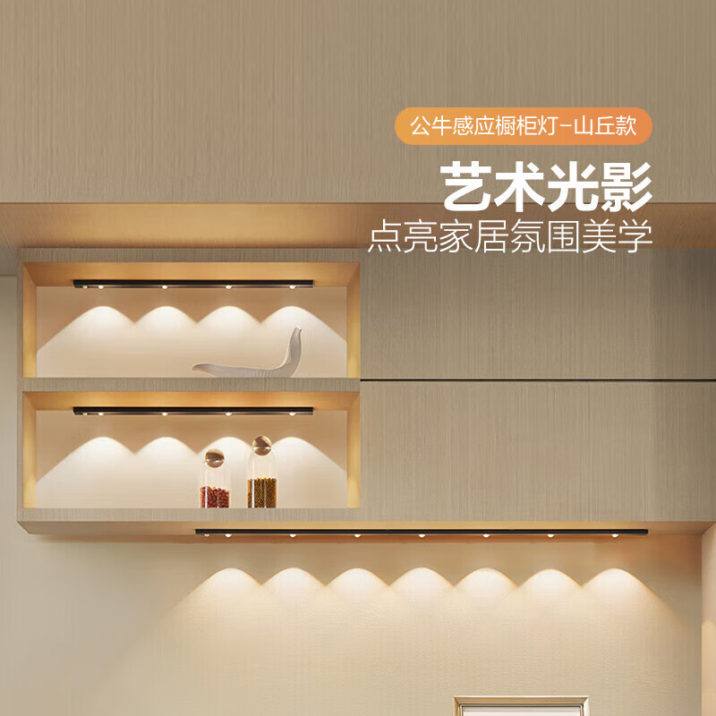 公牛(BULL)感应猫眼橱柜灯磁吸充电山丘光效展柜玄关氛围小夜灯 黑40cm三色价格:99.90元!