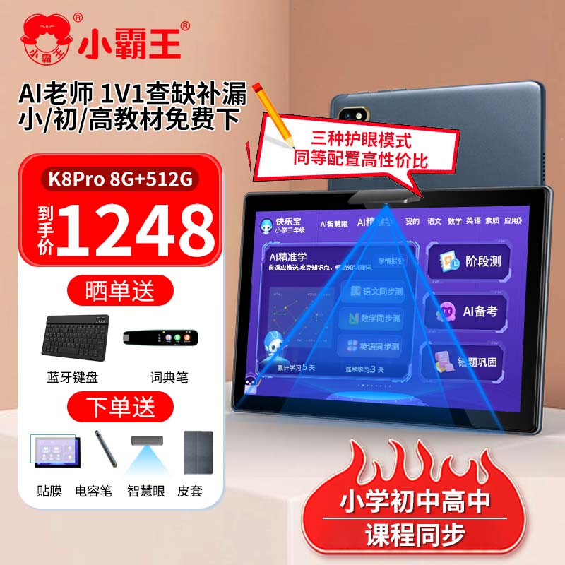 小霸王学习机学生平板电脑8G+512G小学到高中课程同步点读机家教机英语点读笔电子词典价格:1185.00元!