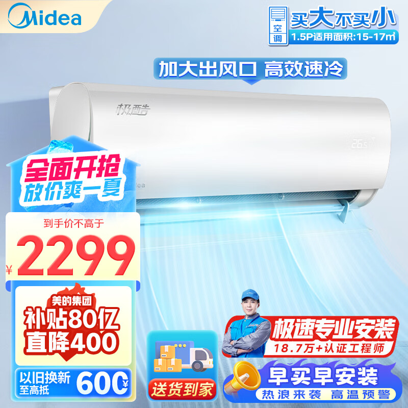 美的(Midea)空调大1.5匹 极酷 新一级能效变频冷暖 自清洁家用卧室壁挂式空调挂机KFR-35GW/N8VHA1Ⅱ价格:2299.00元!