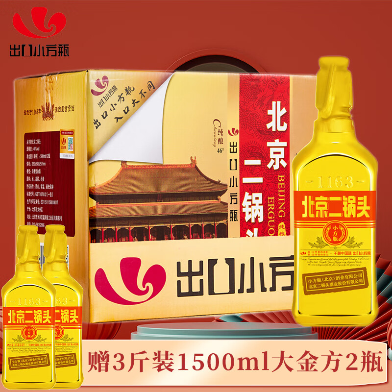 永丰牌北京二锅头清香型白酒出口小方瓶金瓶46度纯粮酒整箱装500ml*12瓶价格:1080.00元!
