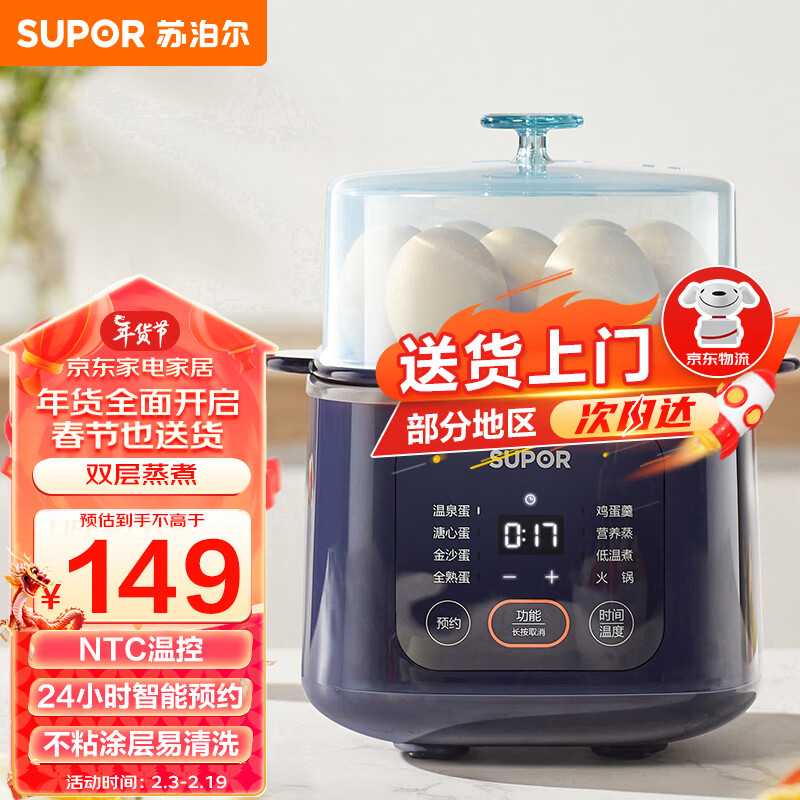 苏泊尔(SUPOR)煮蛋器 蒸蛋器 电蒸锅煮鸡蛋神器 微电脑预约可定时自动断电 家用蒸鸡蛋溏心蛋多用途锅 Z15FC856价格:139.00元!