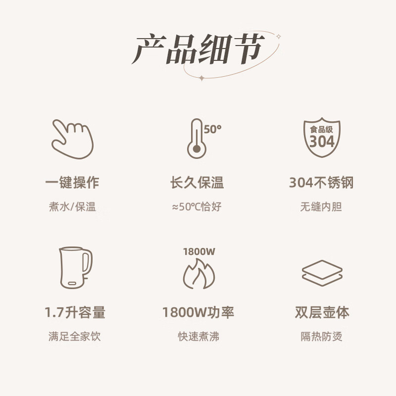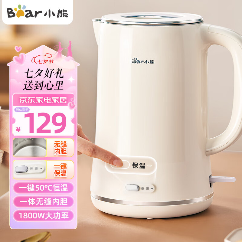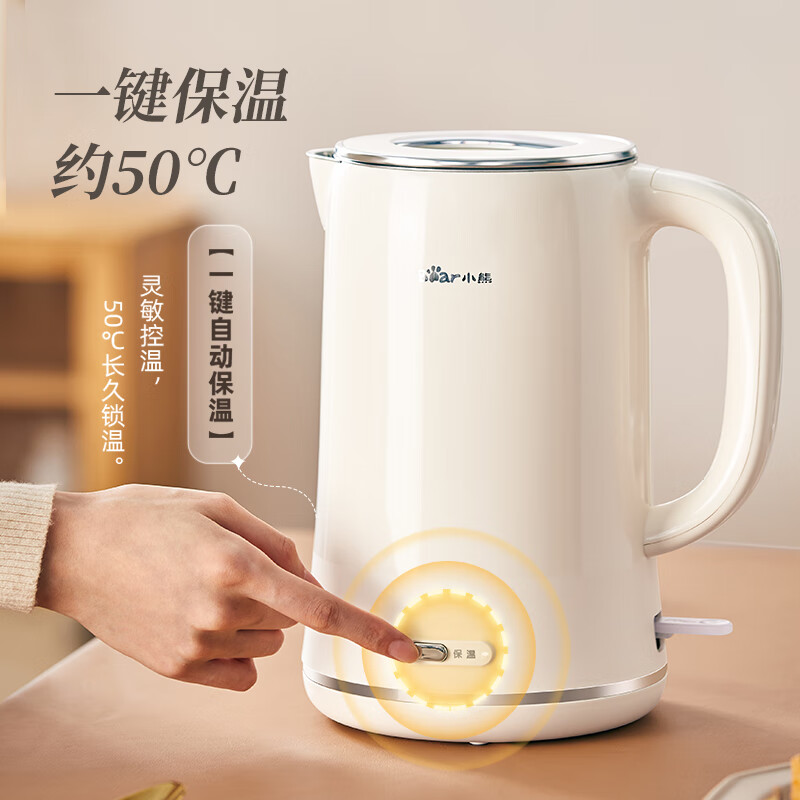 小熊(Bear)电水壶烧水壶 热水壶电热水壶304不锈钢一键保温家用恒温水壶1.7L容量双层防烫开水壶 ZDH-D17H1价格:129.00元!