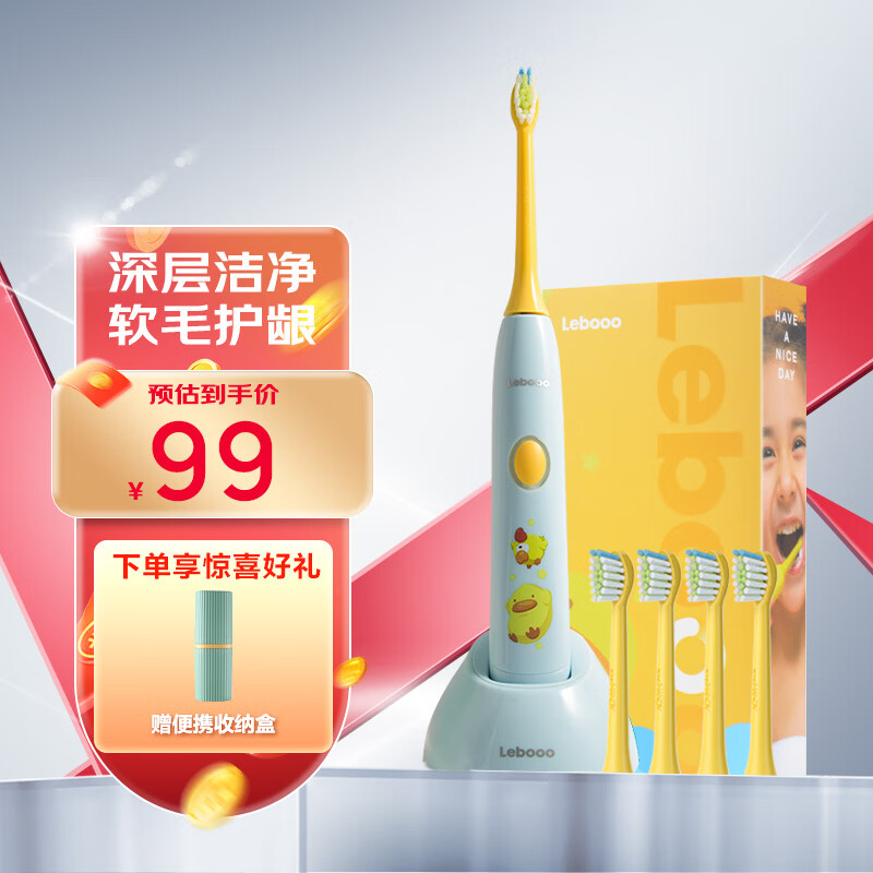 力博得(Lebooo)儿童电动牙刷震动软毛防水全自动智能声波牙刷生日礼物节日儿童节礼物 3-15岁适用 YOYO 萌趣蓝价格:99.00元!