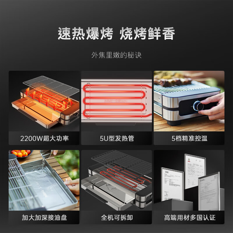 法诗缇(Fastee)电烧烤炉烤肉机烤串机家用电烤炉电烧烤架不锈钢 烤肉串牛排五花肉鱼大功率速热不粘 单烤网款 1层价格:319.00元!