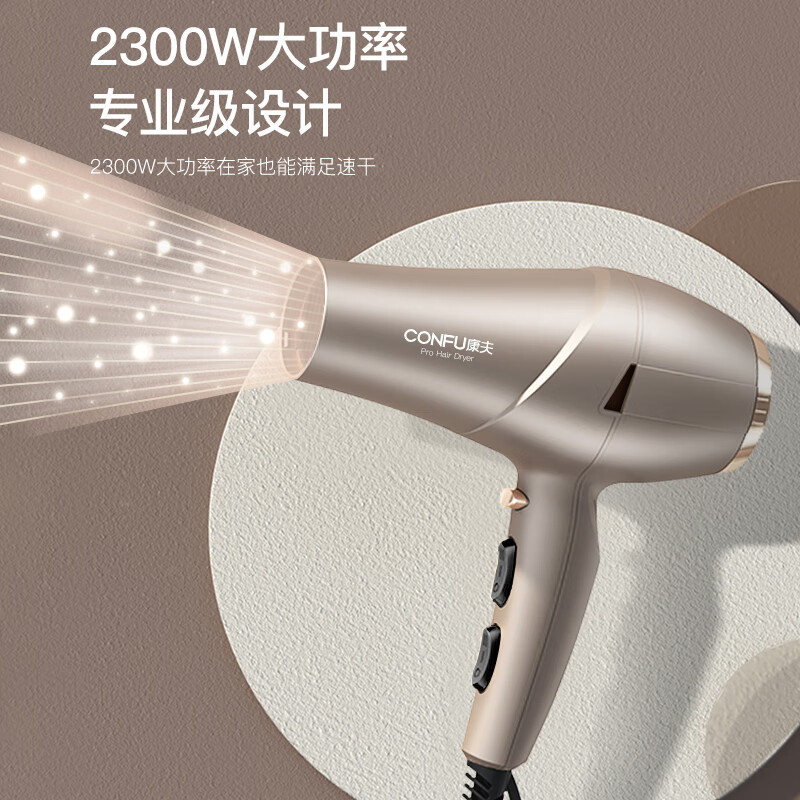 康夫(CONFU)电吹风机家用大功率2300W吹风筒 专业发廊款大风力恒温快速干发电风筒KF-5919价格:99.90元!