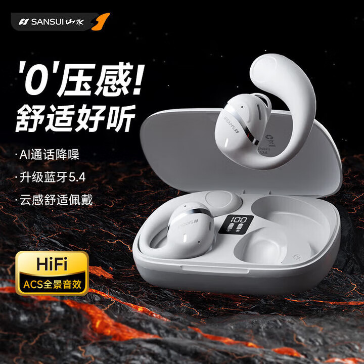 山水(SANSUI)TW95 蓝牙耳机 骨传导概念耳挂挂耳式无线开放不入耳 运动跑步通话降噪 适用于苹果华为小米 白价格:79.00元!