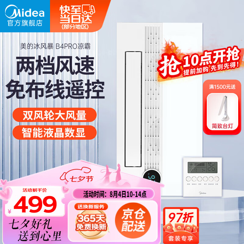 美的(Midea)凉霸照明一体冷霸嵌入式集成吊顶厨房冷风机冷风扇无线遥控吹风扇价格:499.00元!