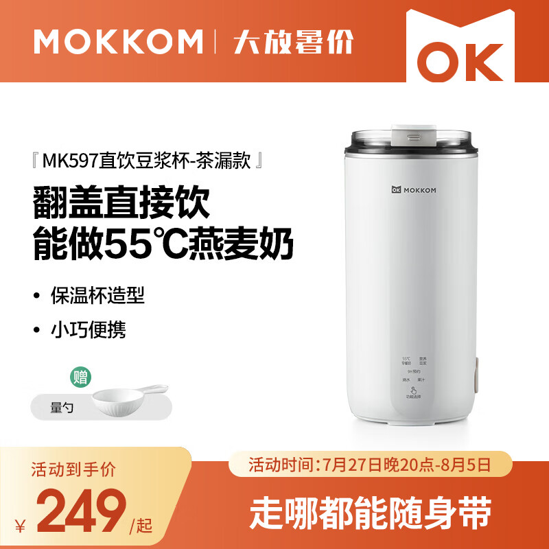 mokkom磨客豆浆机可直饮迷你破壁机便携多功能养生壶杯轻音榨汁料理机米糊辅食早餐机MK597白(带茶滤)价格:249.00元!