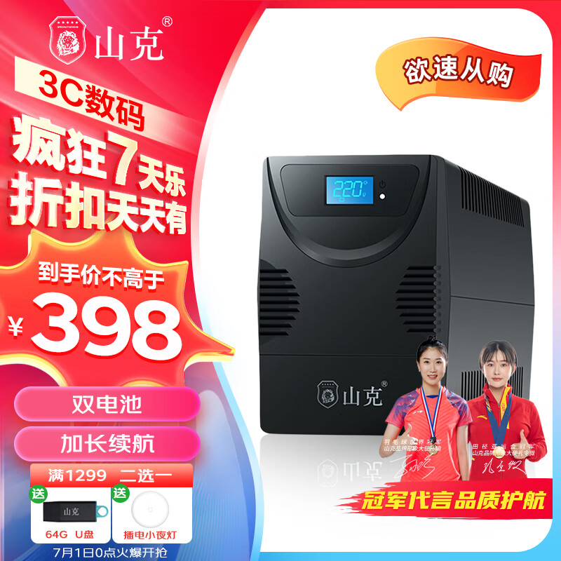 山克SK1000 ups不间断电源 1000VA 600W家用办公电脑稳压备用应急ups电源价格:398.00元!