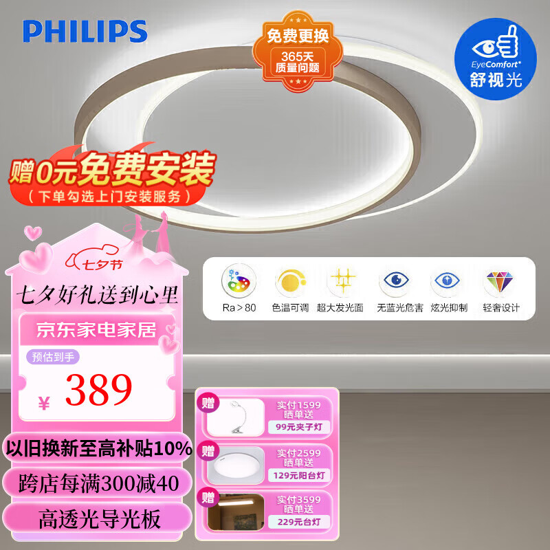 飞利浦(PHILIPS)LED吸顶灯卧室灯客厅灯书房儿童房灯饰灯具环慕45W皓月白价格:429.00元!